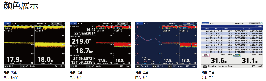 当与FURUNO远程显示设备RD-20/50连接时,可以在远程位置观察到深度信息。